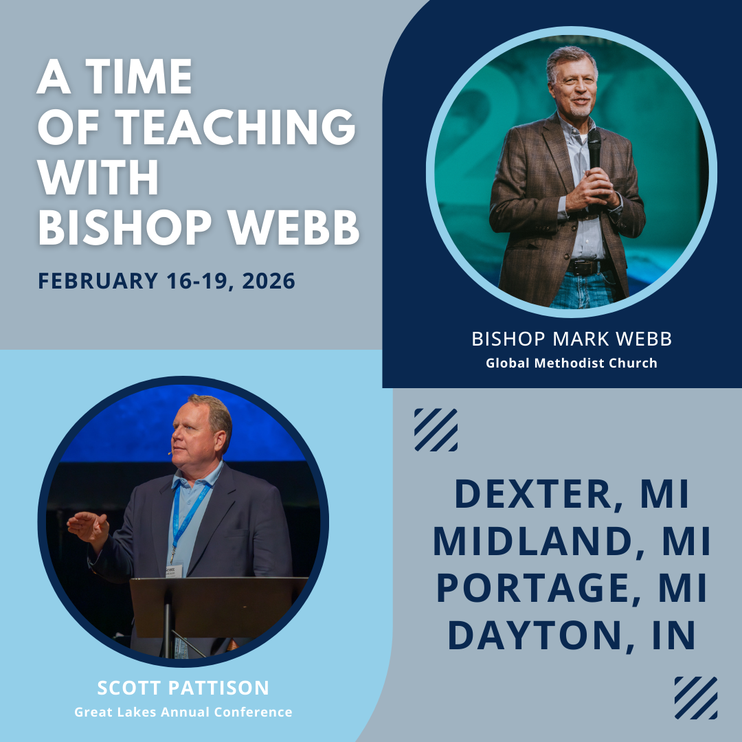 Global Methodist Church Bishop Mark Webb will return to the Great Lakes Annual Conference in February for his second tour, once again traveling with Conference Superintendent Scott Pattison to lead special gatherings designed for both clergy and laity. These continuing events will center on the theme "The Heart of a Leader" for clergy and "Being the Church – Living our Identity & Purpose" for laity. "The response to Bishop Webb's first visit was tremendous," said Conference Superintendent Pattison. "We're excited to welcome him back and extend this opportunity to additional areas of our conference. His commitment to investing in our pastors and laity continues to bear fruit, and I encourage everyone who hasn't yet had the chance to attend to make this a priority." Each host congregation will welcome participants with time set aside for fellowship and teaching. Building on the success of the initial tour, additional host sites representing different areas of the Great Lakes region have been selected. Host churches for this second round include those listed below. Clergy and laity from all surrounding communities are warmly invited to attend. Attendance is free, but advance registration is requested to assist with event planning. Light refreshments will be served for each gathering. Register online using the link below. Everyone is welcome!